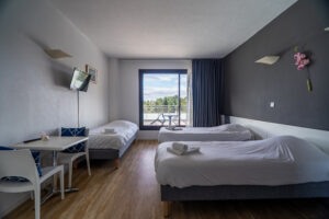 45 chambres spacieuses avec vue imprenable sur les Pyrénées, avec terrasse ou balcon, dont 2 accessibles aux personnes à mobilité réduite. Serviettes de toilette et linge de lit fournis.