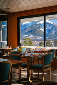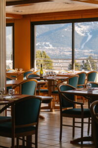 Restaurant avec terrasse panoramique. En formule demi-pension ou pension complète. Restauration de qualité et variée, spécialités régionales. Petit-déjeuner en mode buffet. Panier repas sur commande.